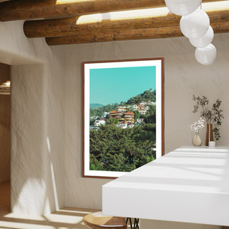 Perched high above the emerald canopy, Crown of the Jungle captures the harmony between architecture and nature — a symphony of terracotta rooftops nestled within lush hills.